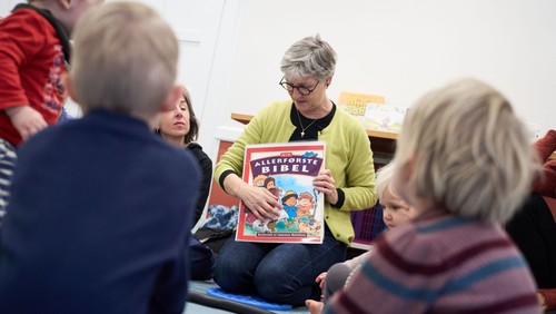 Kl. ca. 10.15 - 10.45 Alle deltager i ”rundkreds” med sange, rim og remser, salmer og en lille bibelfortælling.