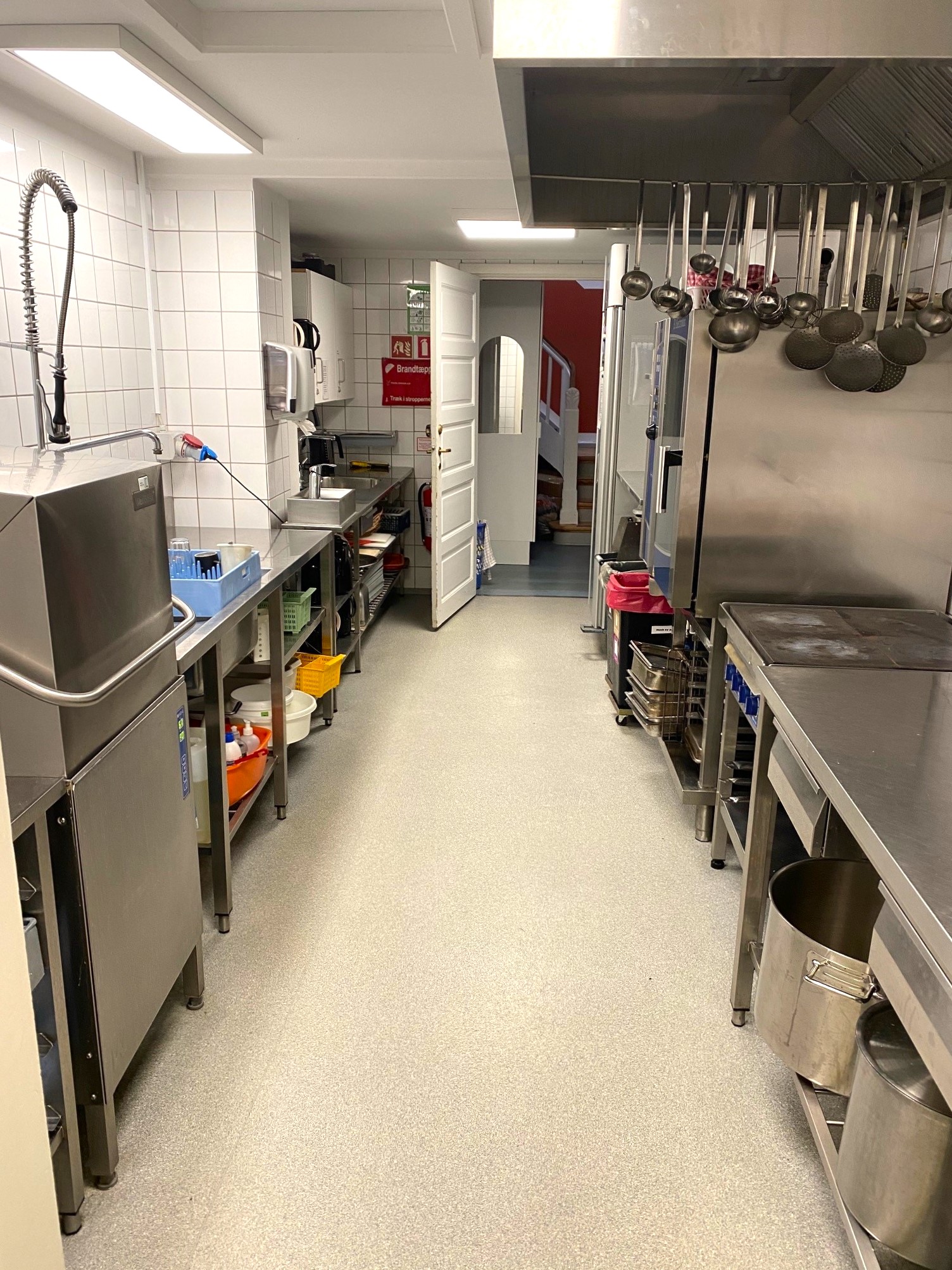 Ved lån af lokale kan køkken med opvaskemaskine, ovne og kogeplader, samt service til +80 mennesker også lånes.